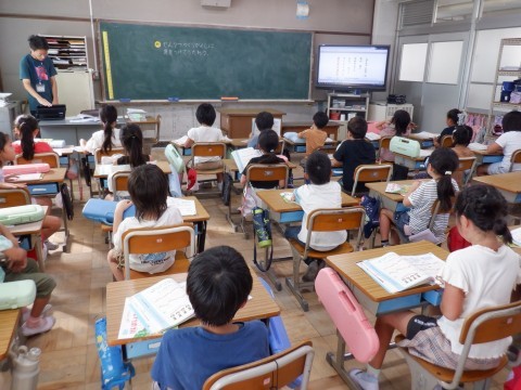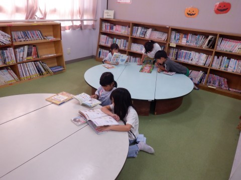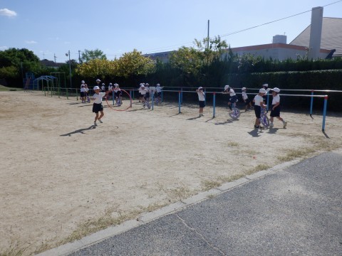 音楽、体育、図書の時間です。体育はグラウンドで一輪車やフラフープを使って活動しました。どちらも難しく、うまくできない児童が続出です。でも、練習すればできるようになりますよ。あきらめずに頑張ってください。