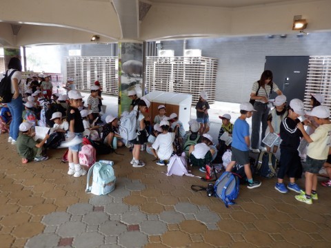 電車を乗り継いで動物園に着きました。荷物を置いて午前中の活動の準備をしました。みんな元気はつらつです。
