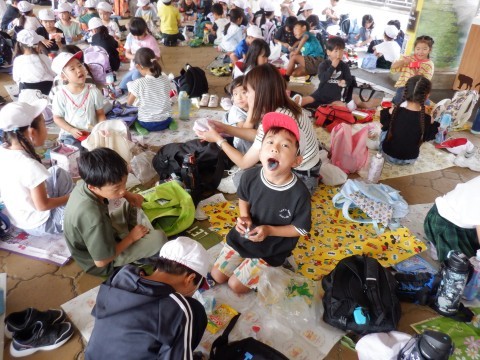 みんなたっぷりのお弁当でおなか一杯になりました。おやつも気に入ったものを持ってきているので、楽しくおいしく食べました。