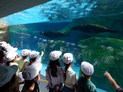ペンギンやアシカは、水の上から見たり、下から見たりすごく興味を持って見ていました。楽しい校外学習でした。