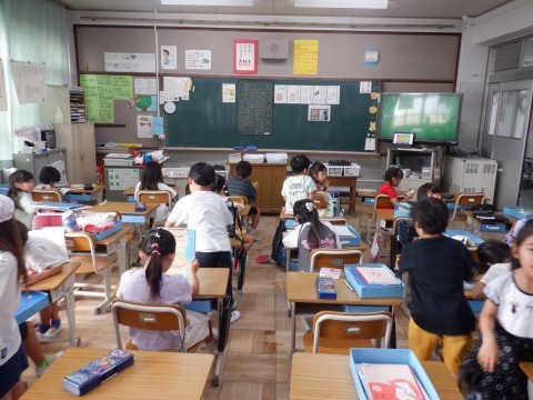 教頭先生が読み聞かせをしてくれています。みんな静かに絵本の世界に入っていました。想像を膨らませるのはいいことですな。