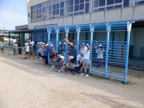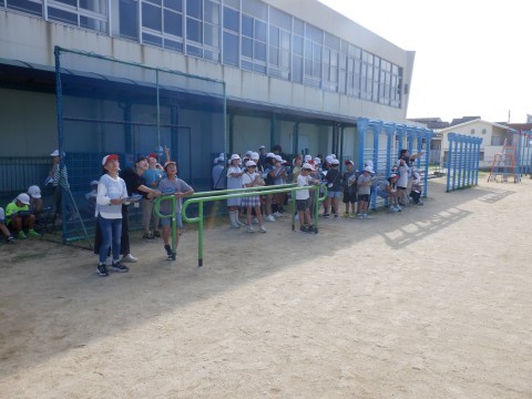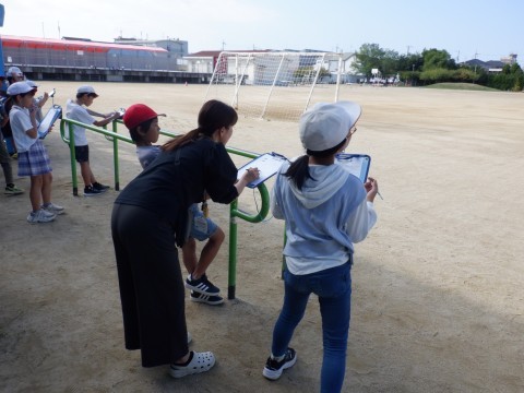 理科の授業を学年全体で行っています。月の観察です。今日は朝から天気も良く、少し西に傾いた空に月が見えていました。朝の月なので少しぼやけた感じですが、半月の形はよく見えました。みんなしっかり観察していました。