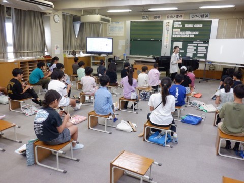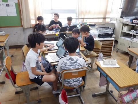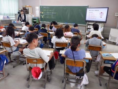 算数、総合、音楽の授業です。総合の授業では、防災について考えています。グループに分かれてテーマを決めて、それぞれのテーマに沿って調べています。みんなで協力して学習を進めています。