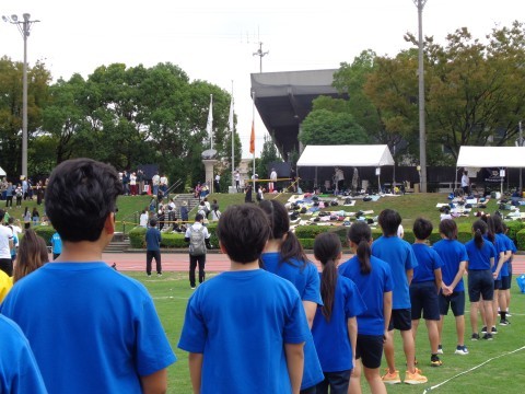 いよいよ開会式のスタート。お話を聞きながら士気を高めます。