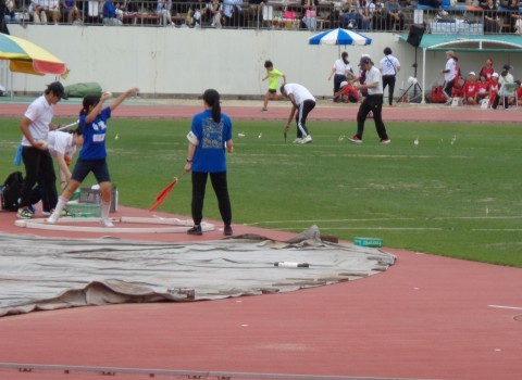 応援席から届く応援に、手を振って応える姿も見られました。遠く遠くめざして投げます。