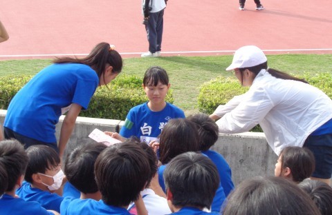 練習時からうまくいっていたバトンパス。今日も4人のチームワークで華麗にバトンをつなぎ、1位になりました。