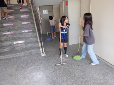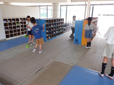 げた箱、階段、ランチルームなどみんなが使うところも分担でそうじしています。みんな一生懸命にそうじしてくれています。ご苦労様です。