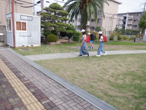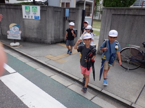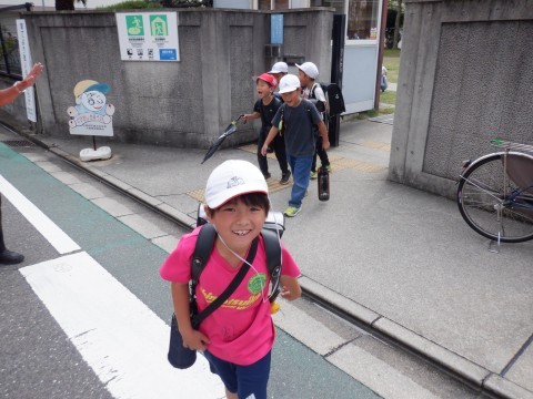 朝は雨が降っていましたが、下校時にはすっかり止んでいました。よかったです。児童たちが元気に下校していきます。交通安全には気をつけてください。明日も元気に頑張りましょう。