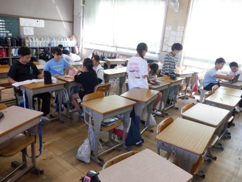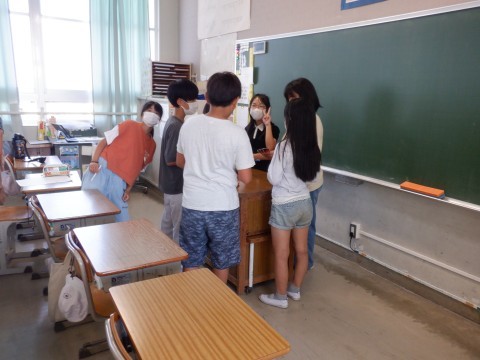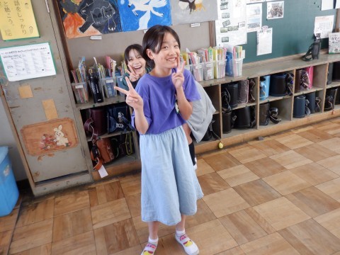 今日は秋晴れ、多くの児童がグラウンドに出ています。校舎、教室にも多くの児童が残って遊んでいます。カードゲームやタブレットなどで遊んだり、お話をしている児童もいます。こちらもリラックスした時間です。