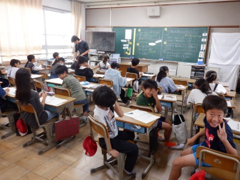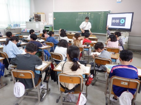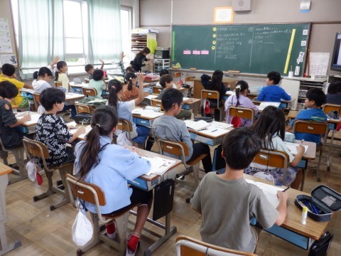 国語、算数の授業です。算数は、文章題に取り組んでいます。問題の意味をとるのも難しいし、そこから式を組み立てるのも難しいです。先生もゆっくりていねいに指導をしています。頑張れ4年生!