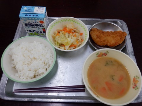 白身魚フライ、キャベツの炒め物、さつま汁、ごはん、牛乳です。給食場からはだしのいい香りが漂って、「今日はおなかがすくねー。」と話してる児童が多くいました。いつもありがとうございます。