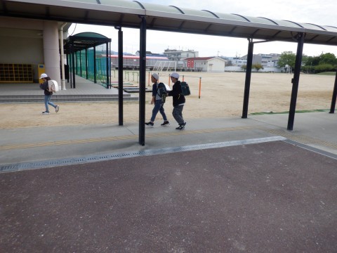 この時間も日差しはなく、肌寒い風が吹いています。児童たちは1日の活動を終えて元気に下校していきます。急に気温が下がると風邪などがはやる傾向があります。あったかくして寝るようにしてください。明日も元気に登校してください。