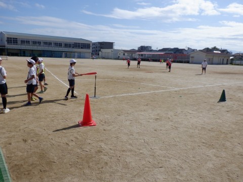 図書、体育です。体育は、グラウンドでティーボールをしました。ベースボール型のゲームですが、止まったボールをバットで打ちます。これがなかなか難しくてうまくバットに当たりません。頑張れ 5年生!