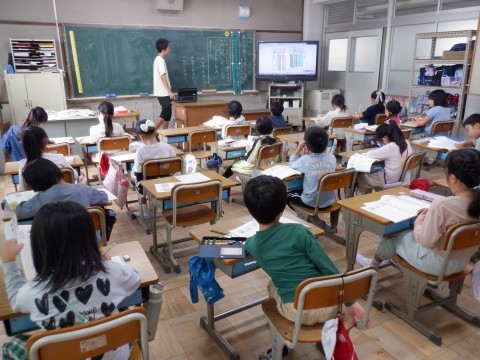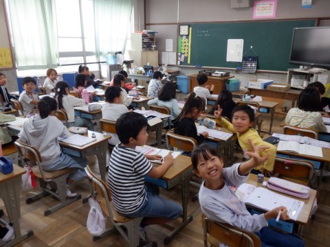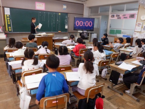 全クラス国語の授業をしています。説明文を読み取っています。「かみコップ花火を作ろう」という文を読み、どんな工夫がされているかを考えます。しっかり読み取れるかな。頑張りましょう。