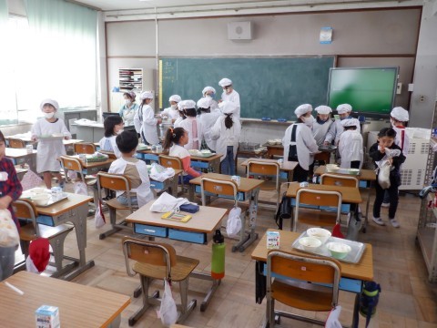 2年生 給食の準備