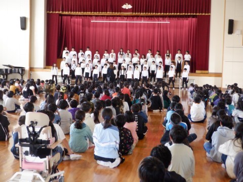 5年生の連合音楽会に出演するのを励ます会が行われました。