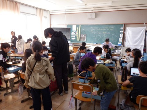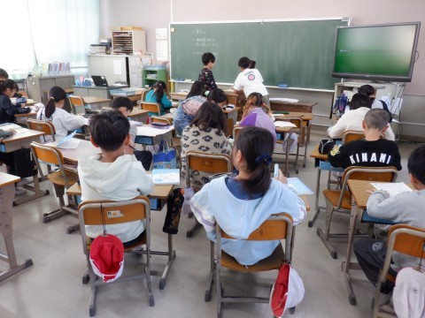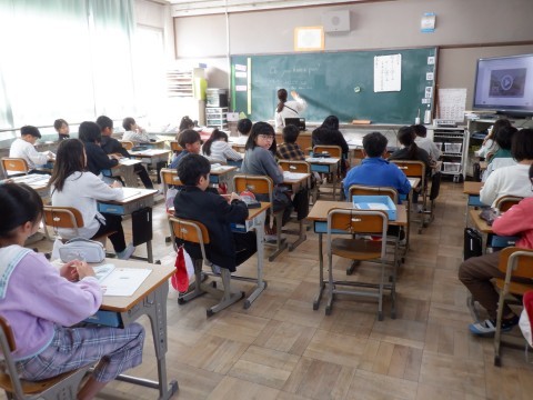 国語、外国語の授業です。外国語の授業は、デジタル教科書の発音を聞き取って意味を確認していっています。外来語としていつも使ってる言葉も英語として発音すると聞き取りにくくなっています。慣れていくのも大事ですね。