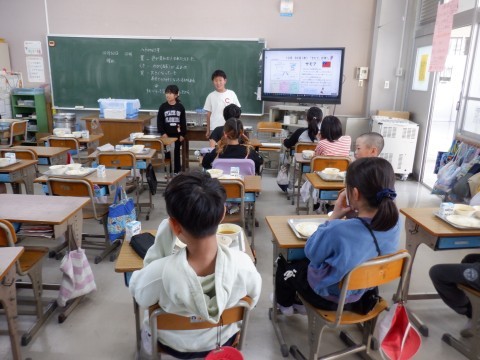 4年生の給食準備の様子です。