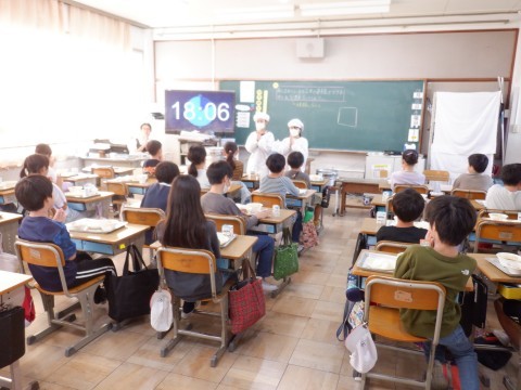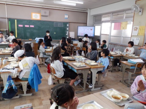 4年生の今日の準備は、順調に進んですべてのクラスで「いただきます。」をしています。今日のサモアの料理はどんな味なのかに関心が集まっていました。