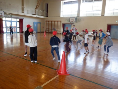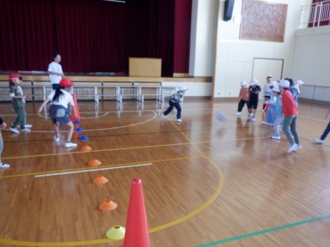 今日は、20分休憩と昼休みに体育館で1試合ずつ行われました。4年生と2年生の試合です。どちらも白熱した試合で、迫力のあるボールの投げ合い、逃げ合い、絶妙のコンビーネーションなど見どころがたくさんありました。勝っても負けても精いっぱい頑張っていました。