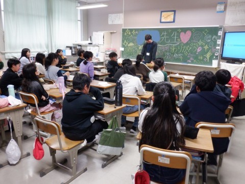 学活、音楽の授業です。学活の時間は、教育実習の先生のお別れ会をしました。これまでお世話になった先生と楽しい時間を過ごしました。最後に先生からお別れと感謝のメッセージが伝えられると思わず涙する児童もいました。これまでありがとうございました。
