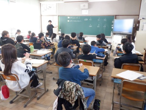 外国語、算数の授業です。外国語は、道案内をしようです。英語で道を尋ねられたら、どうしたらいいかを学習しました。タブレットを使って学習しました。実際に尋ねられても大丈夫かな。頑張ってください。