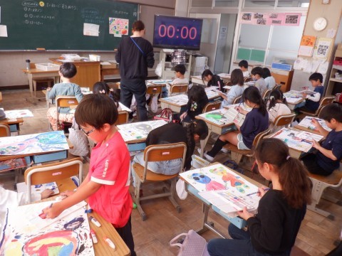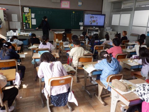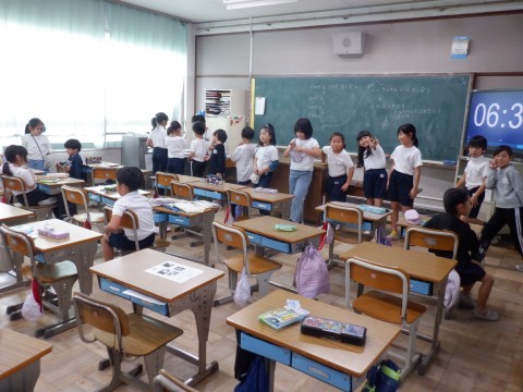 算数、国語、図工の時間です。算数はかけ算の九九に取り組んでいます。今日は6の段を中心に取り組んでいます。6の段は難しいです。うまく言えるようになるかな。頑張ってください。