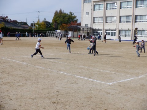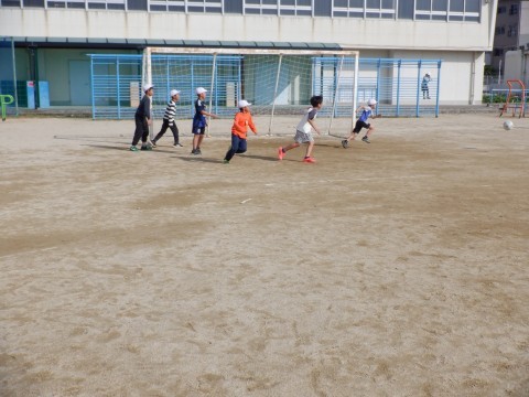 今日もたくさんの児童がグラウンドで遊んでいます。サッカー、ドッジボール、鉄棒、一輪車などをして過ごしています。本当に気持ちのいい秋の日です。しっかり体を動かして遊んでください。