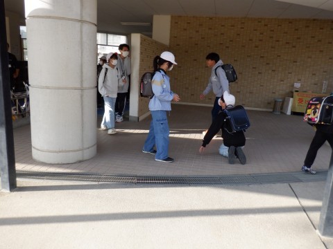 今日も1日の活動を終えて下校していきます。昼は日差しが出て、過ごしやすい陽気になりました。明日も元気に登校してください。