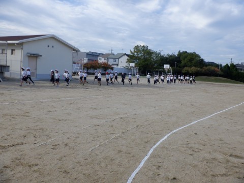 今日は1、2年生の予定でしたが、1年生が学年閉鎖のため、2年生だけで行われました。11月下旬で行われるかけ足記録会のコースで走りました。みんな頑張って走りました。