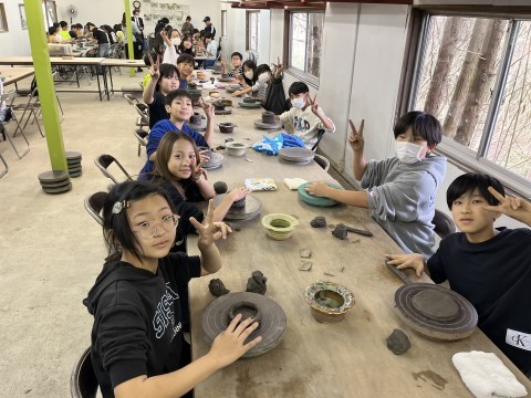 実際にろくろや手びねりを使って自分だけの器づくりに挑戦しました。どれも力作ぞろいです。制作した作品は、後日焼き上げて学校へ届けていただく予定です。