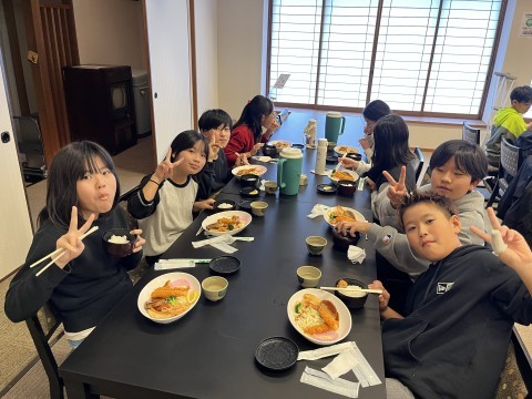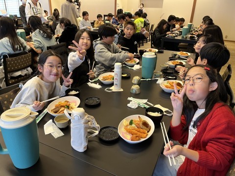 広々としたテーブル席で、友だちと楽しく会話をしながら昼ごはんを食べていました。「最高」「めっちゃおいしい」「おかわりしたい」と大満足の6年生です。次の目的地、鳥羽水族館へ向かいます。