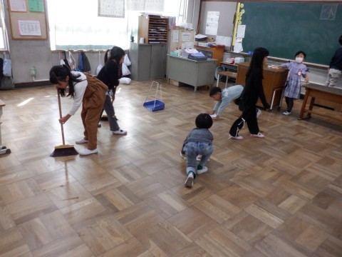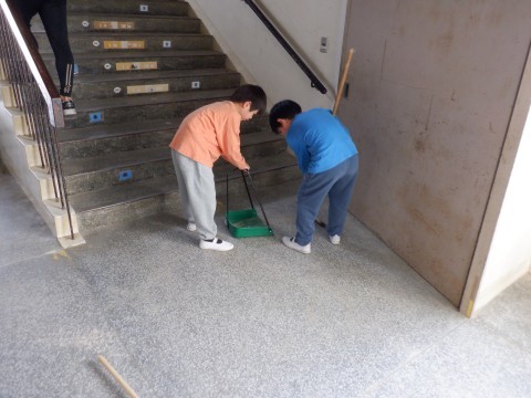 教室、ろう下などみんな一生懸命に掃除をしています。これから気温が下がってくるとぞうきんがけは手が冷たくなって大変ですね。みんなで協力して頑張りましょう。