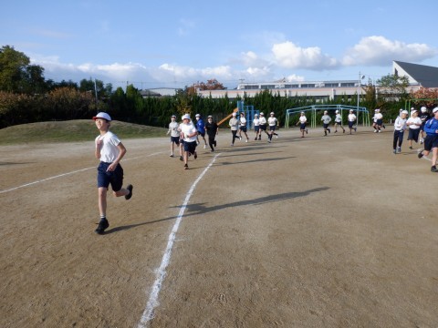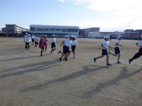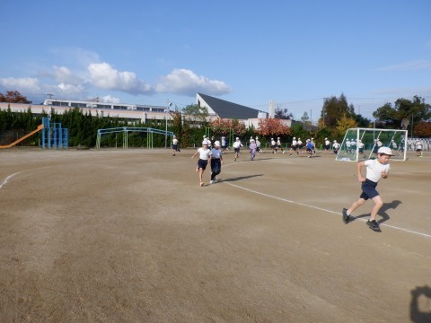 マイペースで走ってもかなり早く走れる児童がいました。さすがは5、6年生です。今日は冷え込みましたが、走ることによって寒さも吹っ飛んでるようです。