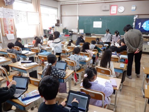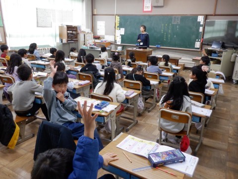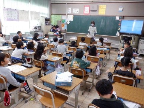 算数、書写、国語で授業です。算数は、問題の意味を読み取りながらひき算かなたし算かなと考えながら進めています。文章を読み取る力も必要ですね。頑張りましょう。
