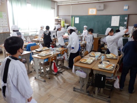 4年生も係を中心に配膳を頑張ってくれています。すでに配膳を済ませて「いただきます。」をしたクラスもありました。