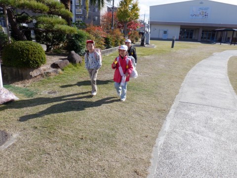 朝は冷え込みましたが、日差しが出ると暖かく感じられました。学校で育てた大根を持って帰る学年もありました。大きいですね。家までしっかり持って帰ってください。