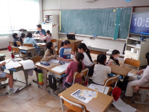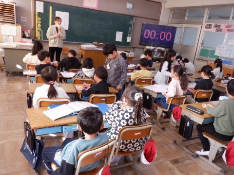 国語の授業を行っています。物語では、どんなお話なのかしっかり内容が読み取れるようにグループで話し合いながら進めています。作者の言いたいことは何かな。しっかり考えてください。