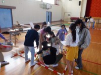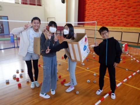 体育館では、6年生はとっておきのお店を用意してくれました。ドラクエの音楽に合わせてスライムを倒すアトラクション風のお店です。みんな楽しみました。