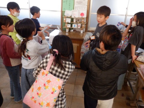 3~5年生は各教室でお店を開いています。