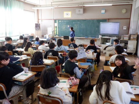 理科、算数の授業です。理科は、光の性質を学習しています。鏡を使ったり、虫眼鏡を使ったりして調べますが、今日は虫眼鏡です。どんな性質があるかな。