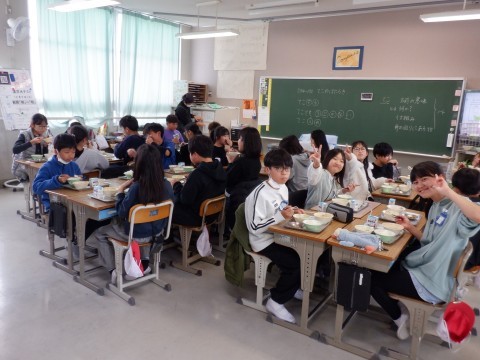 6年生は、給食準備を手際よく進めています。すでにいただきますをしたクラスもありました。給食の時間も楽しく過ごしてください。