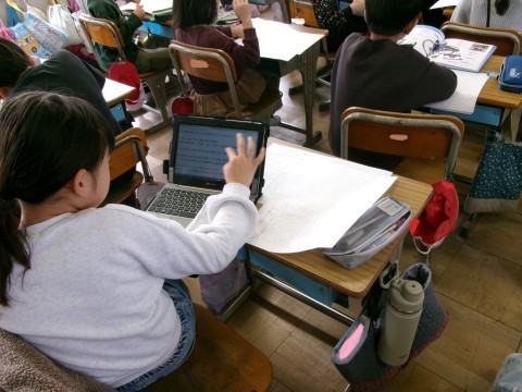 社会と総合の様子です。総合では,車いすやユニバーサルデザイン等について調べていました。今後,一人ひとりが調べた内容を,グループ間で発表する予定です。