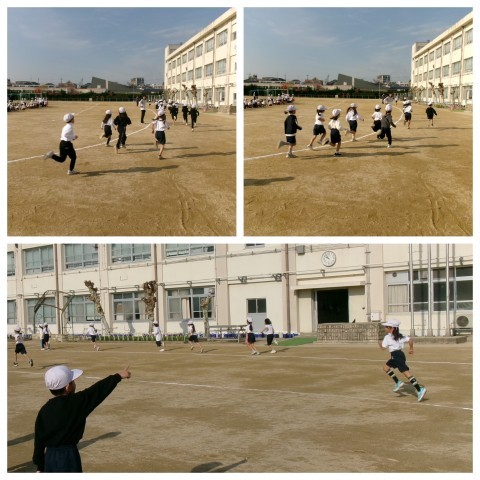 今日,1年生のかけあし記録会をおこないました。どの子も,一生懸命に走り,応援にも力が入り,あたたかい雰囲気の記録会になりました。