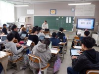 外国語、体育の授業です。体育は体育館でバレーボールの学習です。パスやレシーブなどの練習です。これがなかなか難しく、輪になって練習していますが簡単には続きません。しっかり頑張ってください。