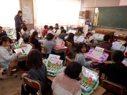 算数、国語、音楽の授業です。音楽の授業は、けん盤ハーモニカの演奏です。みんな一生懸命に練習しました。うまく演奏できるかな。