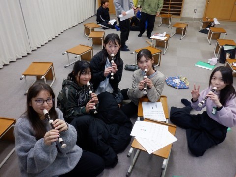 社会、音楽の授業の様子です。社会の授業は、情報の学習です。天気予報も重要な情報ですが、正しくわかりやすく伝えるために様々な努力がされています。そうした情報が伝わってくることを確認しました。