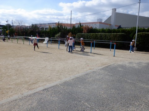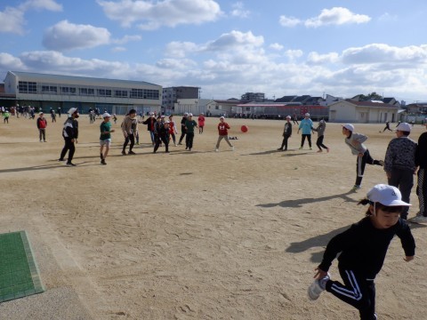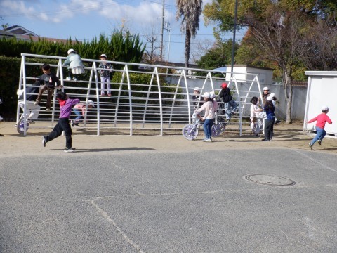 今日も天気も良く、たくさんの児童がグラウンドに出て遊んでいます。一輪車も大人気です。遊具で遊んでいる児童も多くなっています。ドッジボールも盛んです。みんな楽しく休憩時間を過ごしています。