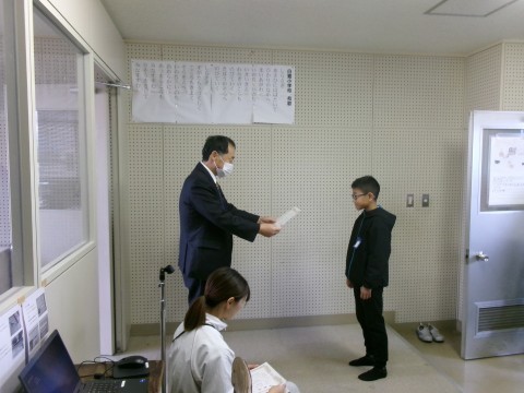 児童会役員の司会で朝礼は進められます。校歌を歌った後、朝のあいさつがありました。教頭先生から人権に関するお話がありました。その後、表彰がありました。駆け足記録会の上位入賞者、読書感想画コンクール、てのひら文庫の表彰です。みんな頑張ってくれました。最後に、美化委員会からの連絡がありました。靴箱をきれいにしましょう。