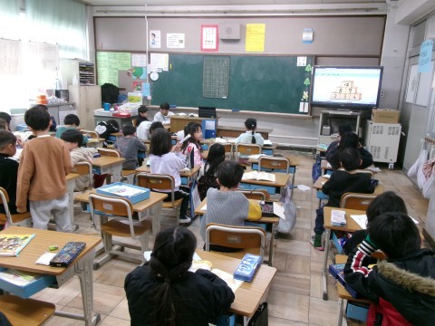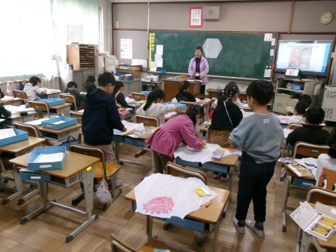 生活、算数、生活の授業です。生活の授業では昔遊びの凧作りをしています。凧に自分で考えた絵を描いています。このところ木枯らしが吹いて凧あげにはいい季節です。よくあがればいいですね。